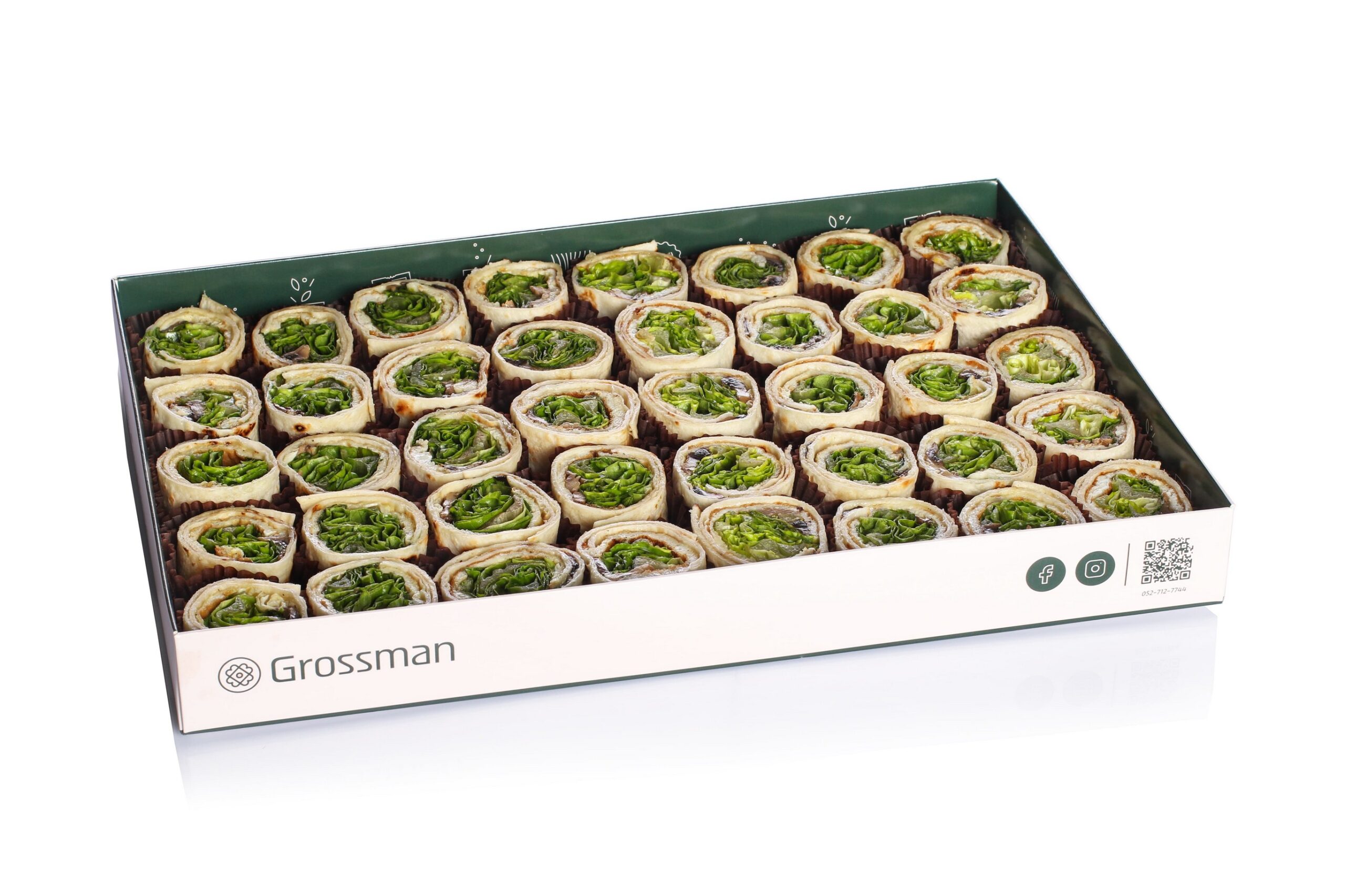 טורטיה קלויה במילוי איולי הבית, אומלט, מיקס פטריות מוקפצות ועלי חסה. מוגשת בצורת עיגולי סושי